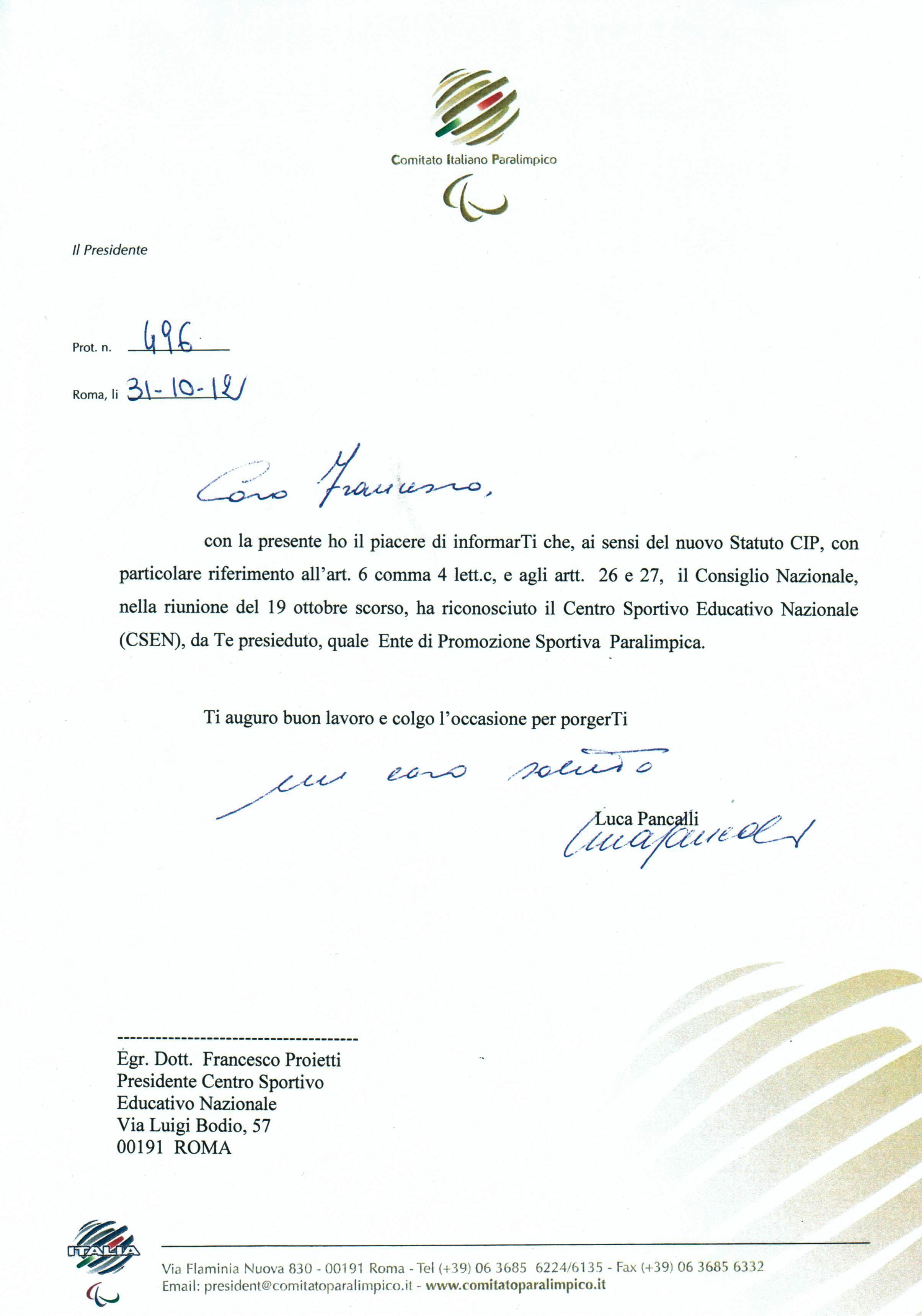 Ente di Promozione Sportiva riconosciuto dal CIP (Prot. N° 765 del 22/02/2021)